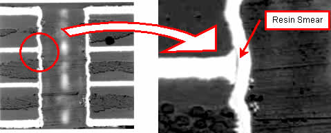没实施去胶渣处理 残留有钻孔所发生之胶渣 实施去胶渣处理