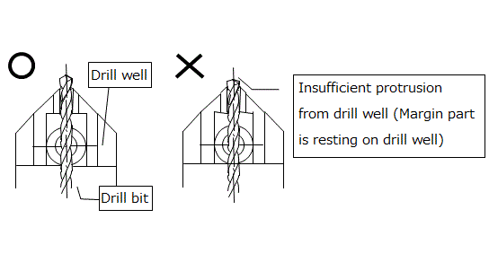 ※虽然对孔品质的影响较小,但钻尖部因分开或重叠异常没形成尖点状而形成线形,多少会造成定位性恶化,孔位置精度的偏差波动也有变大的可能性。