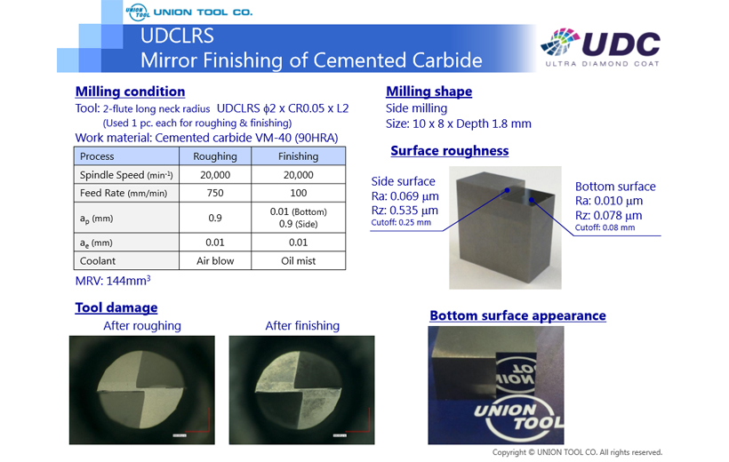 UDCLRS Cemented Carbide (VM-40) Mirror Finishing