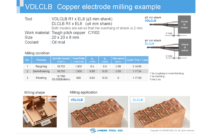 VDLCLB Copper Electrode Milling φ3、φ4 shank Comparison Example