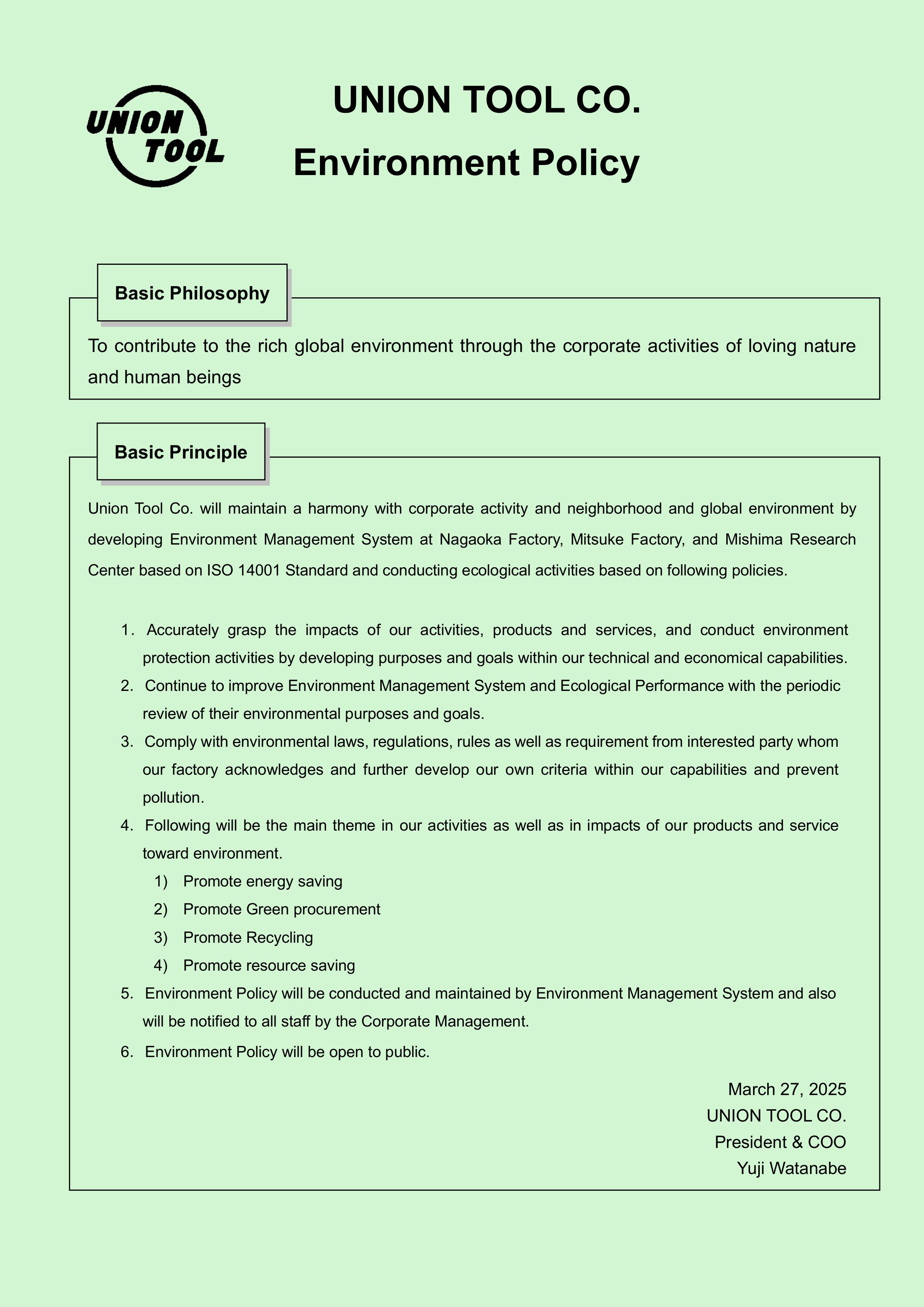 For resource saving, we are developing and improving resource-saving tools and long-life tools through the development of manufacturing equipment and will strive to supply products that are recognized by more customers.