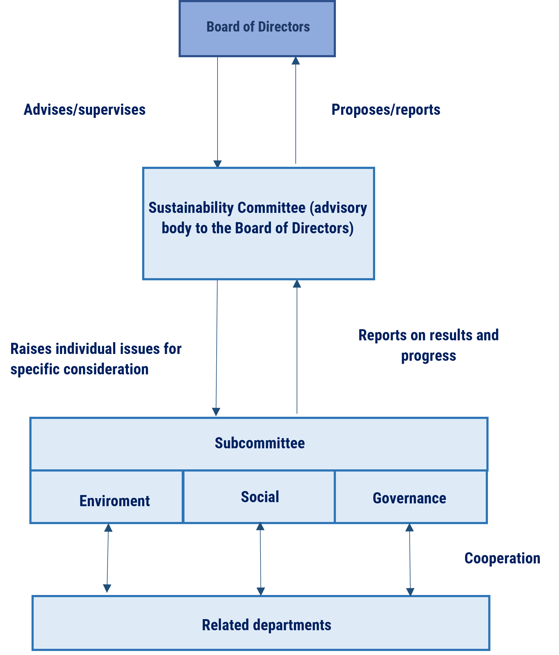 Union Tool established the Sustainability Committee for the purpose of contributing to resolving social sustainability issues from the three-pronged perspective of the environment, society, and governance. The president and COO serves as the chairman of the Committee while the members mainly consist of directors and executive officers with good understanding of each department and who are appointed by the chairman. The Sustainability Committee compiles and evaluates issues related to sustainability across the entire Group. The Committee is tasked with formulating measures to ensure effectiveness, issuing instructions related to the execution of the measures and supervising their implementation, submitting proposals to the Board of Directors, and reporting on the activities as needed.
