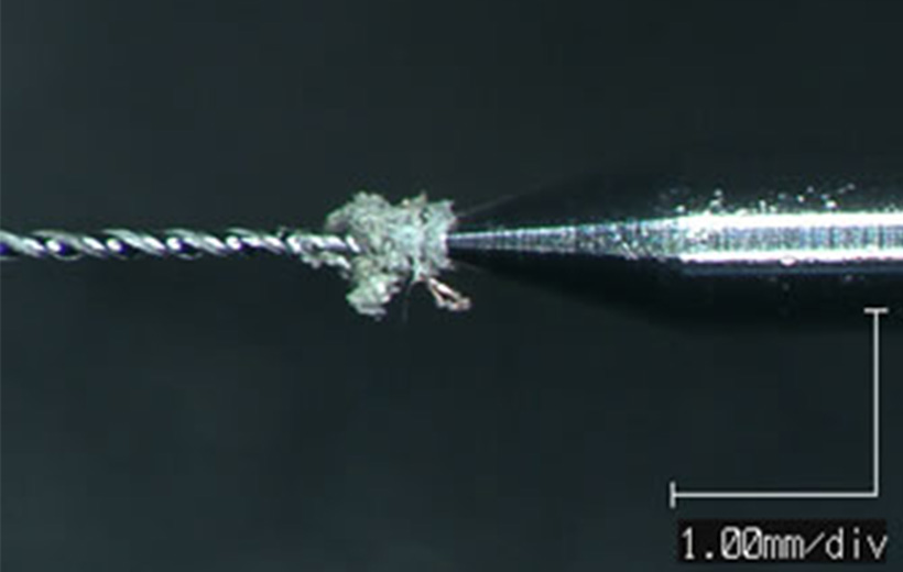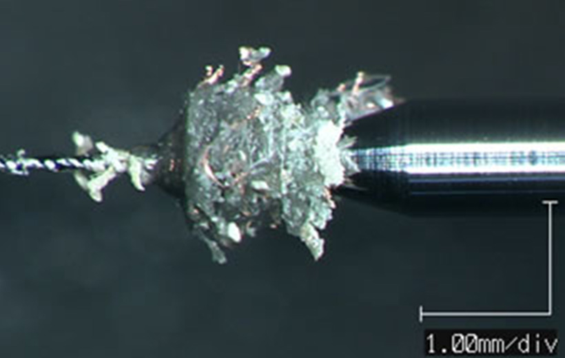ドリル溝根元付近の切り屑巻き付きの形態を評価します。鳥の巣状に見えることからバードネスティングとも呼ばれています。