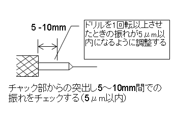 ドリルは基板に食い付いた後、多少歩きの現象を起こすが、ほぼチゼルポイントを中心に回転しながら穴加工する。このためチゼルポイントが偏心している場合、チゼルポイントから外周までの距離の長い方を半径として回転するため、穴径が拡大する。