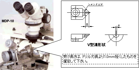 断面形状が90°のV形溝の刃受けです。1サイズの刃受けで、ある範囲のサイズのドリルを受けることが出来るので段取替えの手間が省けます。
