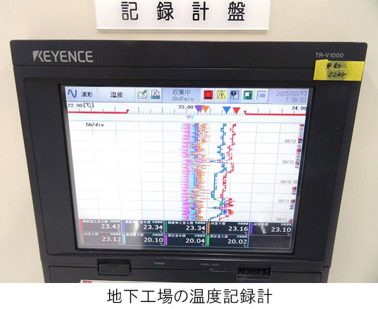 金型部品は地下11mの地下工場で製作。 外気の影響を受けないため、