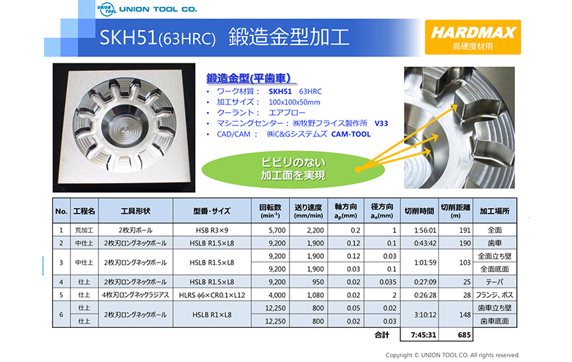 HSB/HSLB/HLRS4000 SKH51 鍛造金型加工(平歯車形状)