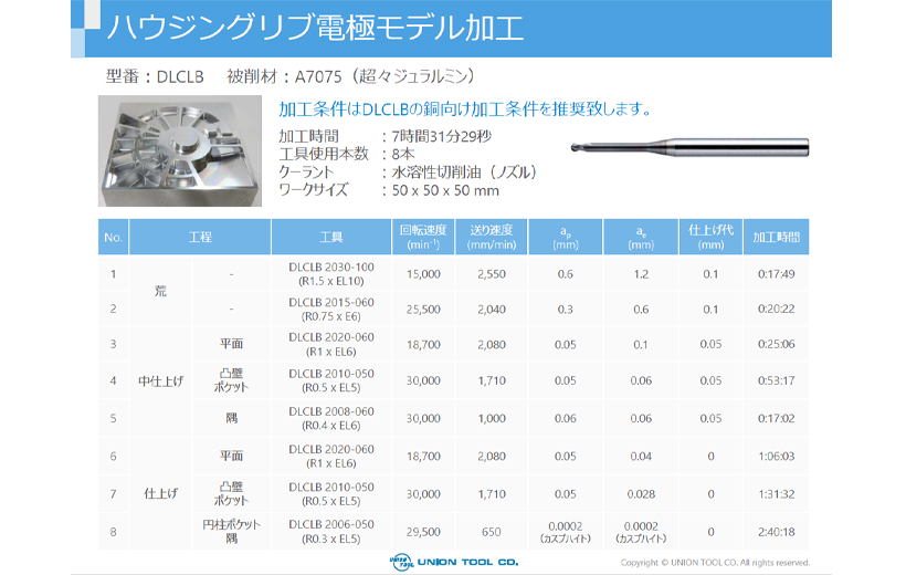 DLCLB A7075 ハウジングリブ電極モデル加工